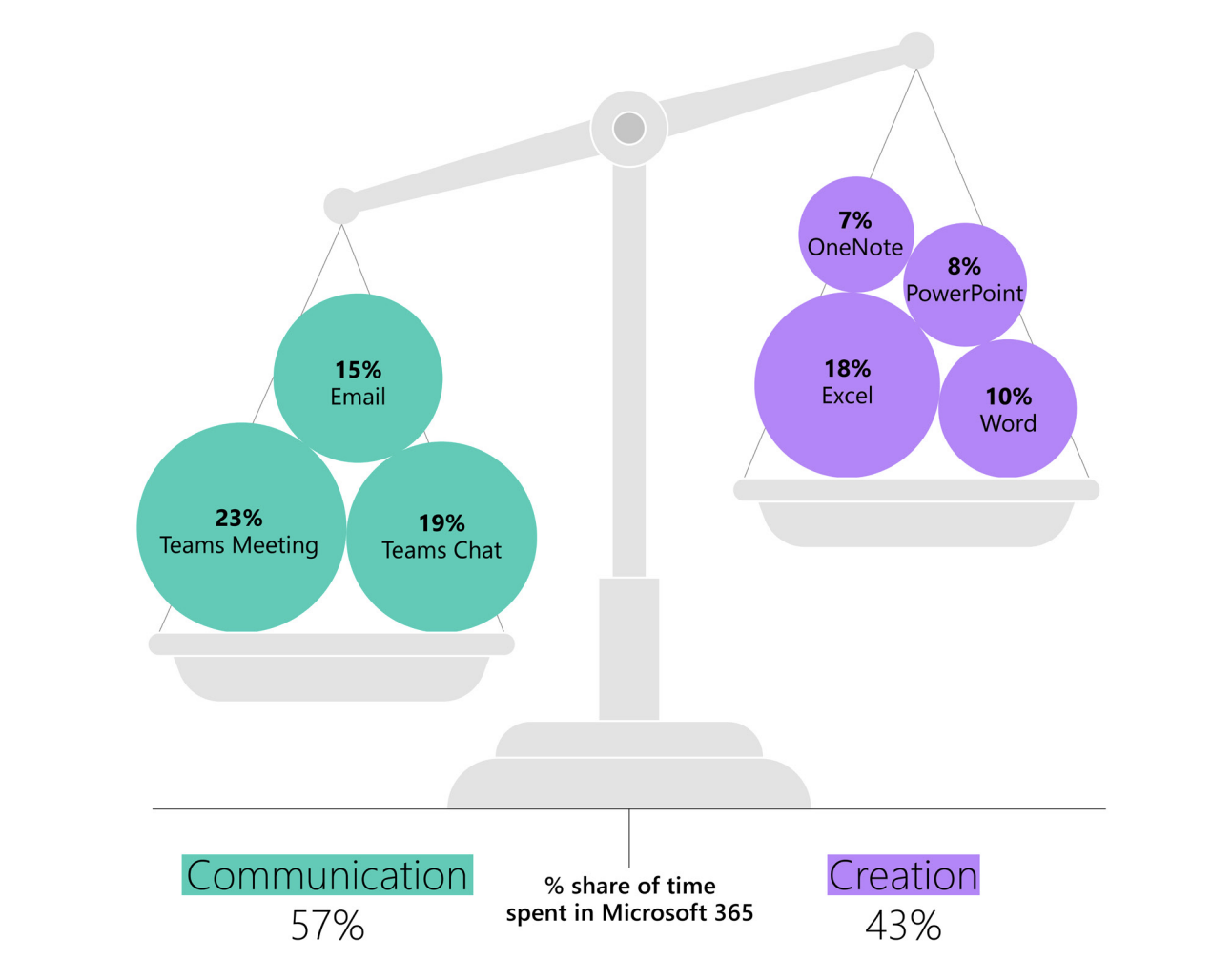 Microsoft's Work Trend Index analyzed the actual usage data of millions of workers across Microsoft 365 and found that the average person spends 57% of their time communicating through emails, chats and meetings, leaving only 43% for the work they were actually hired to do. The same report found that 62% of people struggle with too much time spent searching for information, and 68% say they do not have enough uninterrupted focus time during the workday.